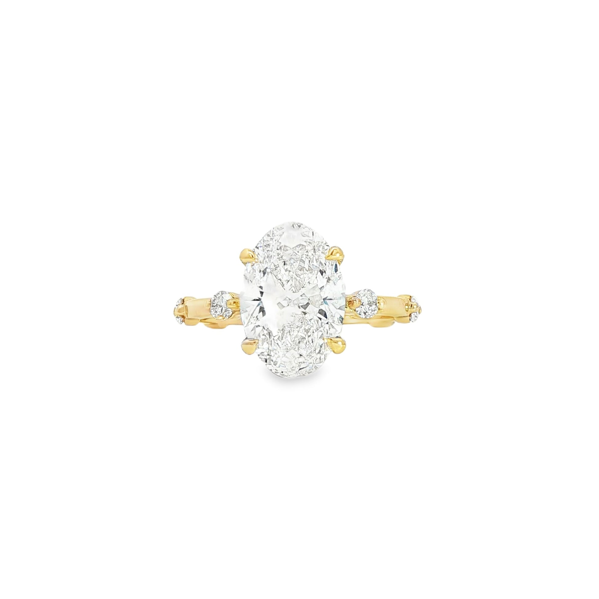 Custom 14K Yellow Gold Oval Diamond Round Station Engagment Ring | J. Vincent Jewelers