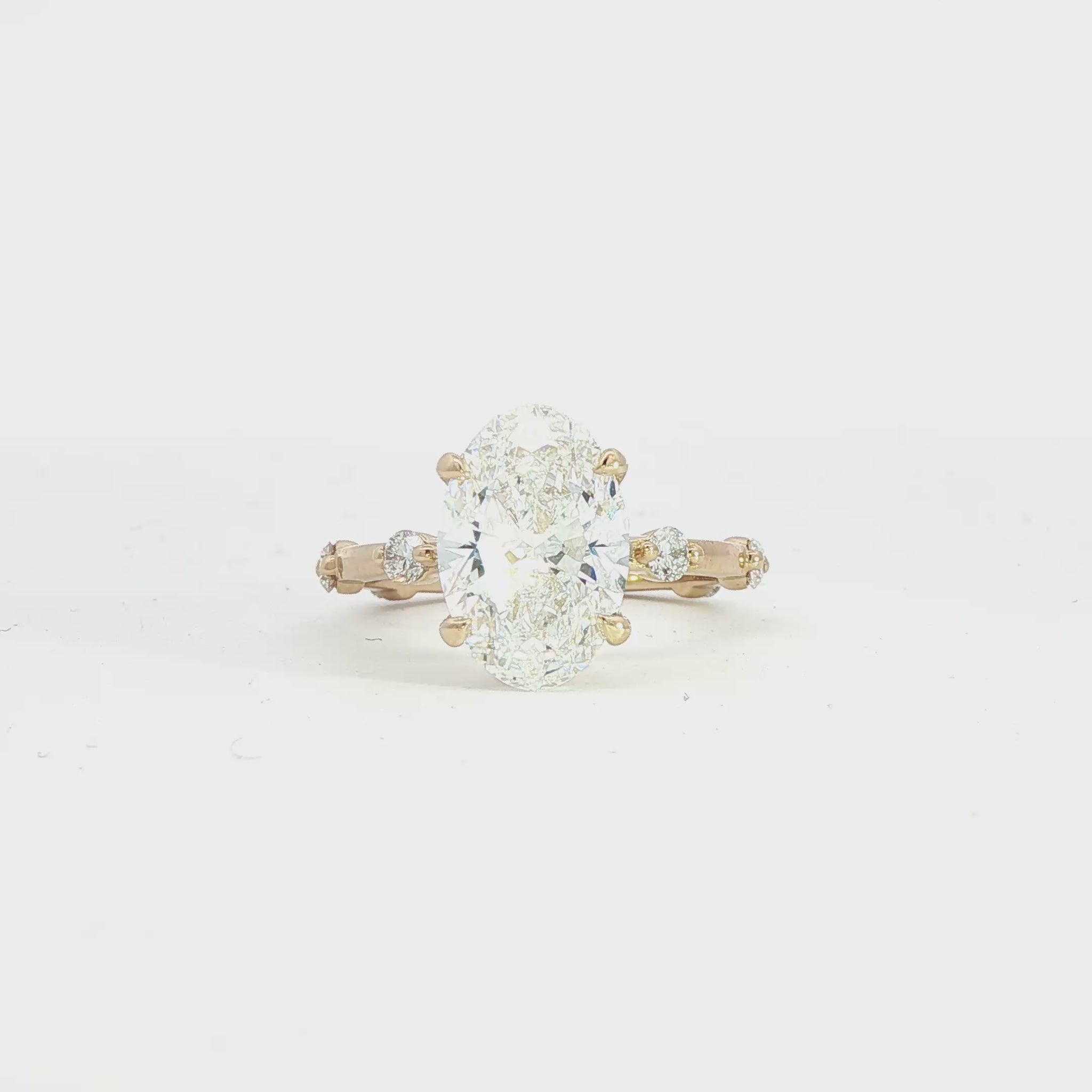 Custom 14K Yellow Gold Oval Diamond Round Station Engagment Ring