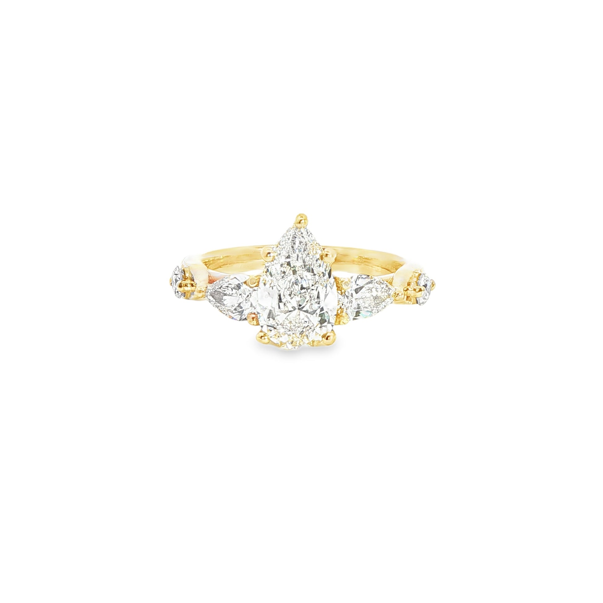 Custom 14K Yellow Gold Pear Five Stone Engagment Ring | J. Vincent Jewelers