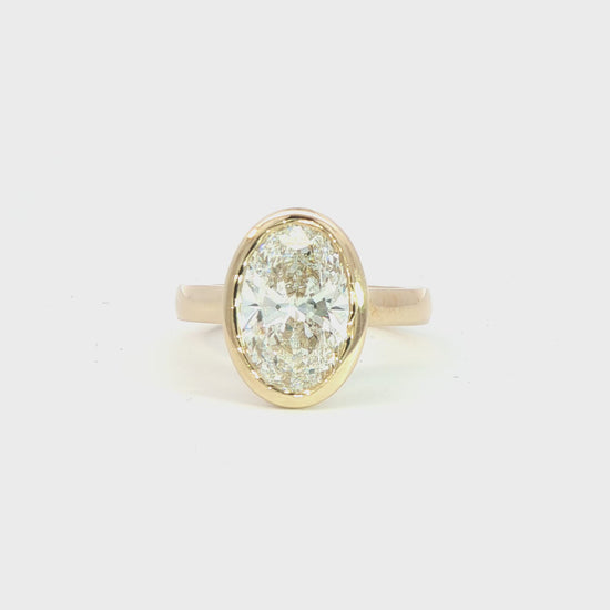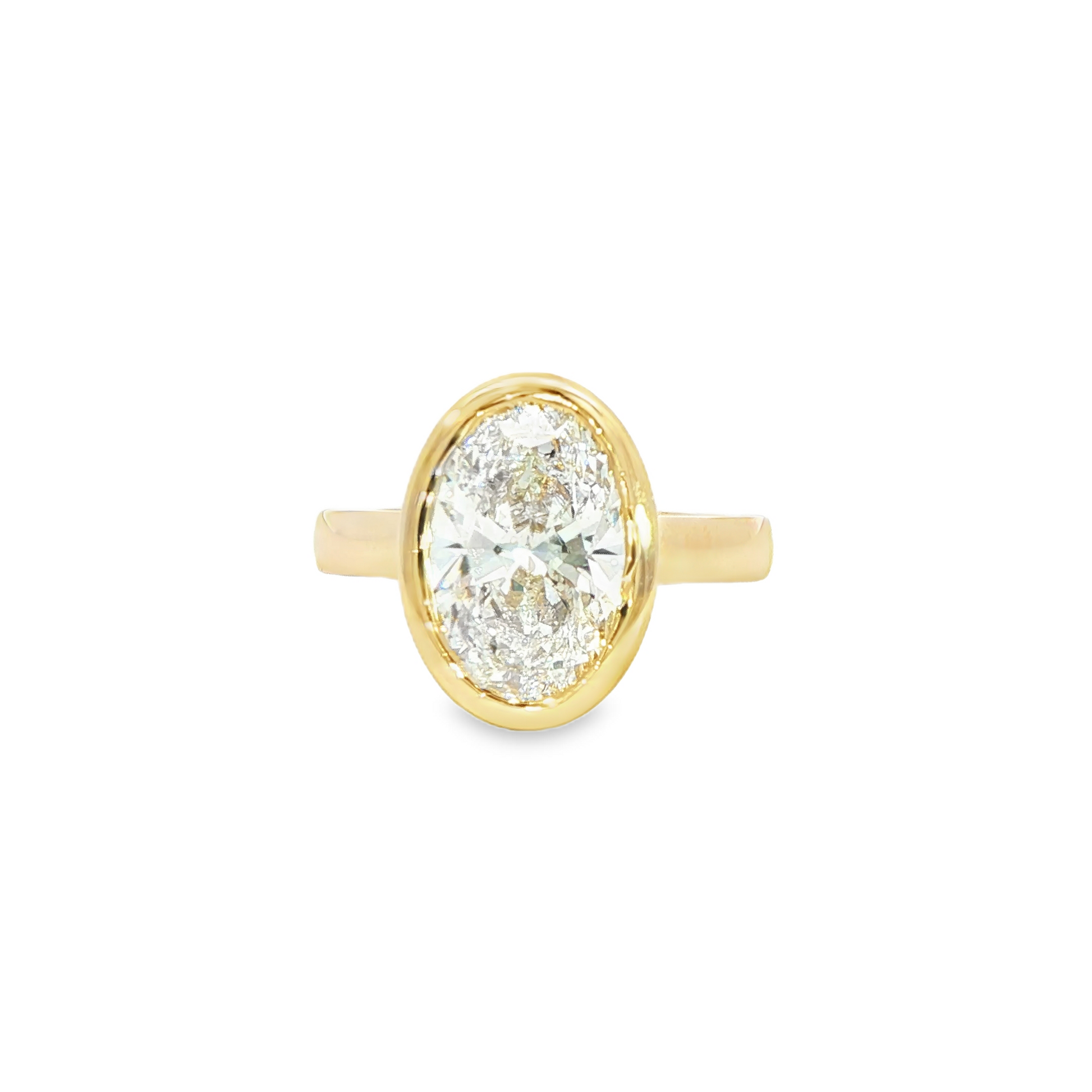 Custom Engagement Ring 3.05Ct Oval Bezel Set 14K Yellow Gold 3Mm Band