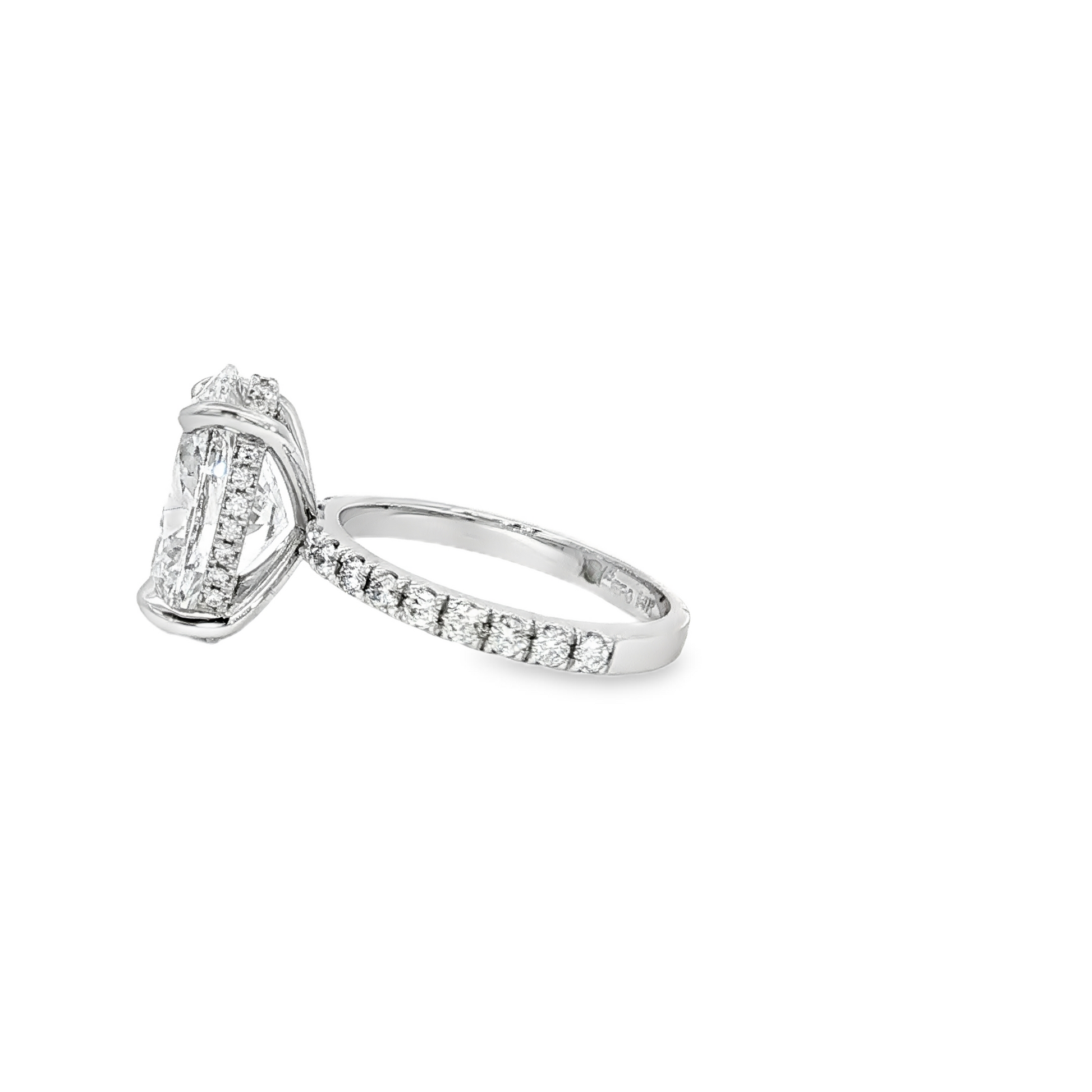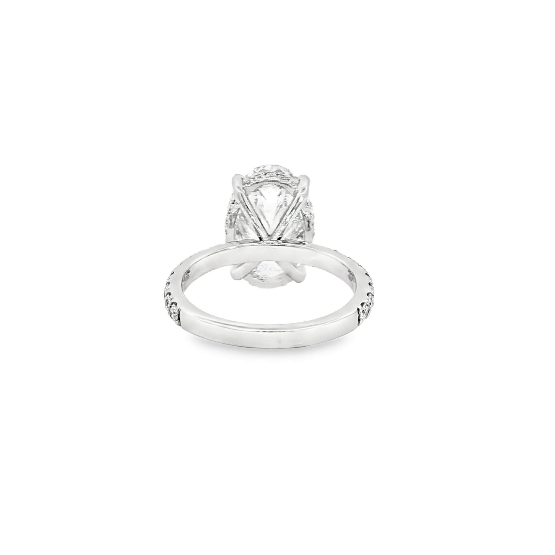 Custom Engagement Ring 3.88Ct Oval With 14K White Gold Hidden Halo And Diamond Mounting