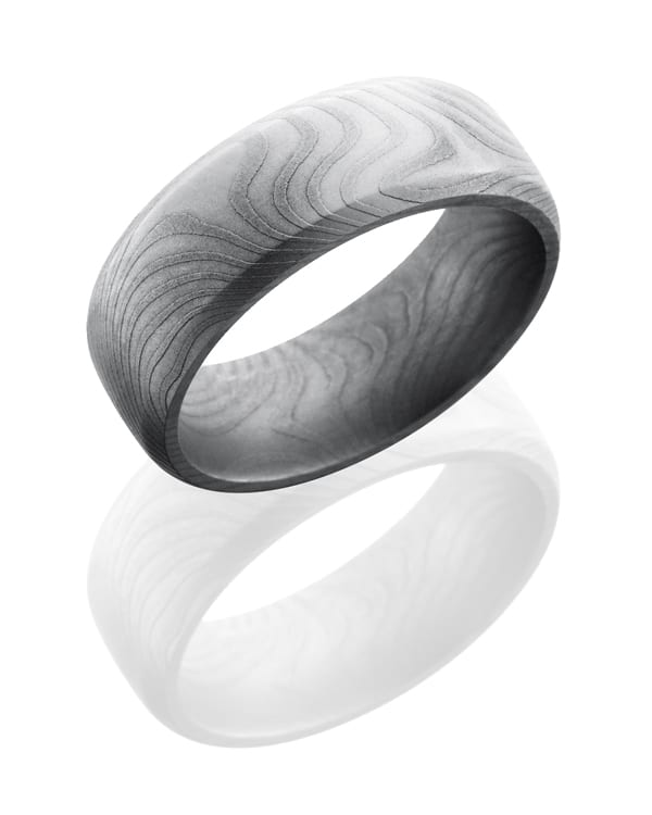 Flat Twist Patterned Damascus Steel 8mm Domed Band with Beveled Edges