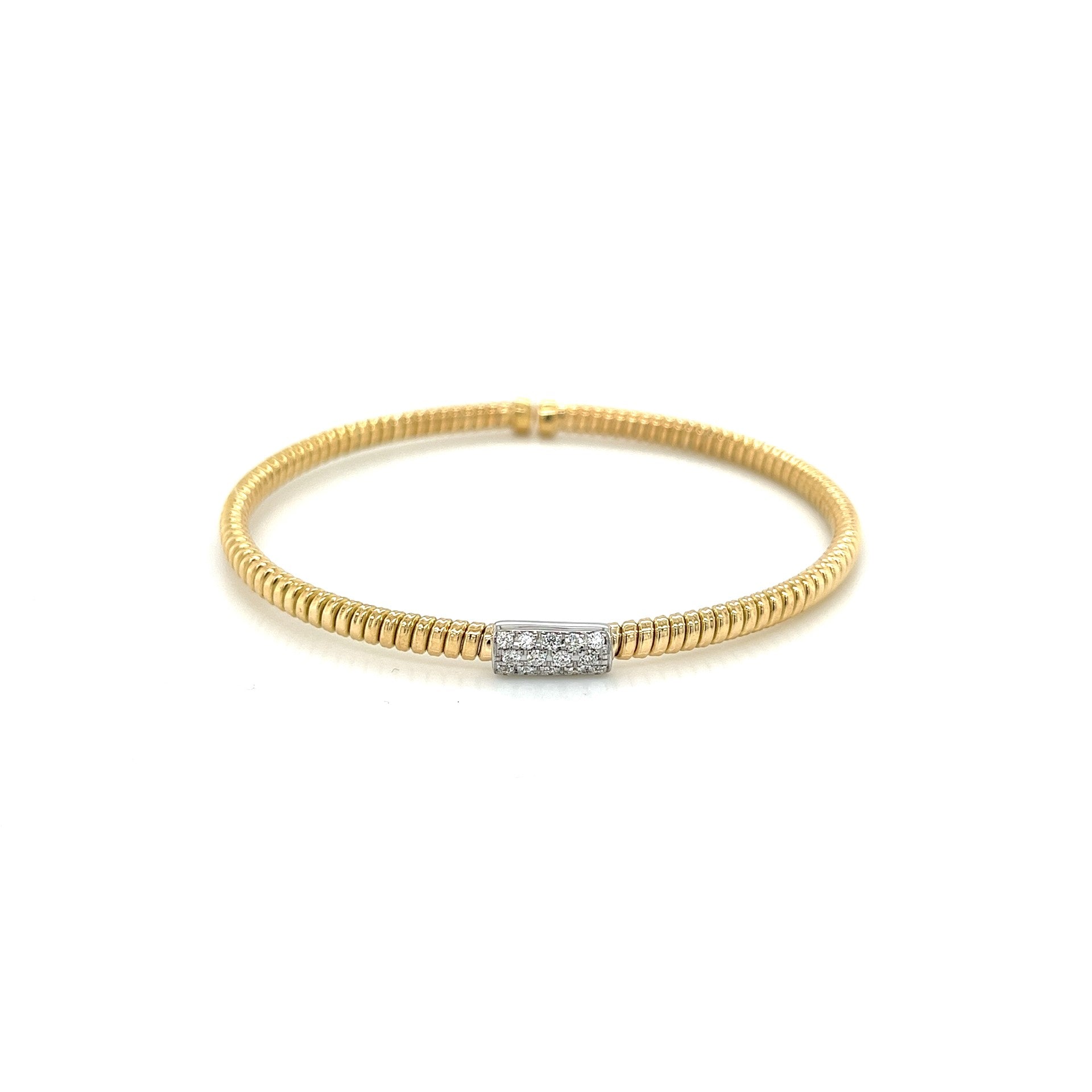 18k yellow and white gold flex bangle with diamond center set with 14 round daimonds 0.18ct