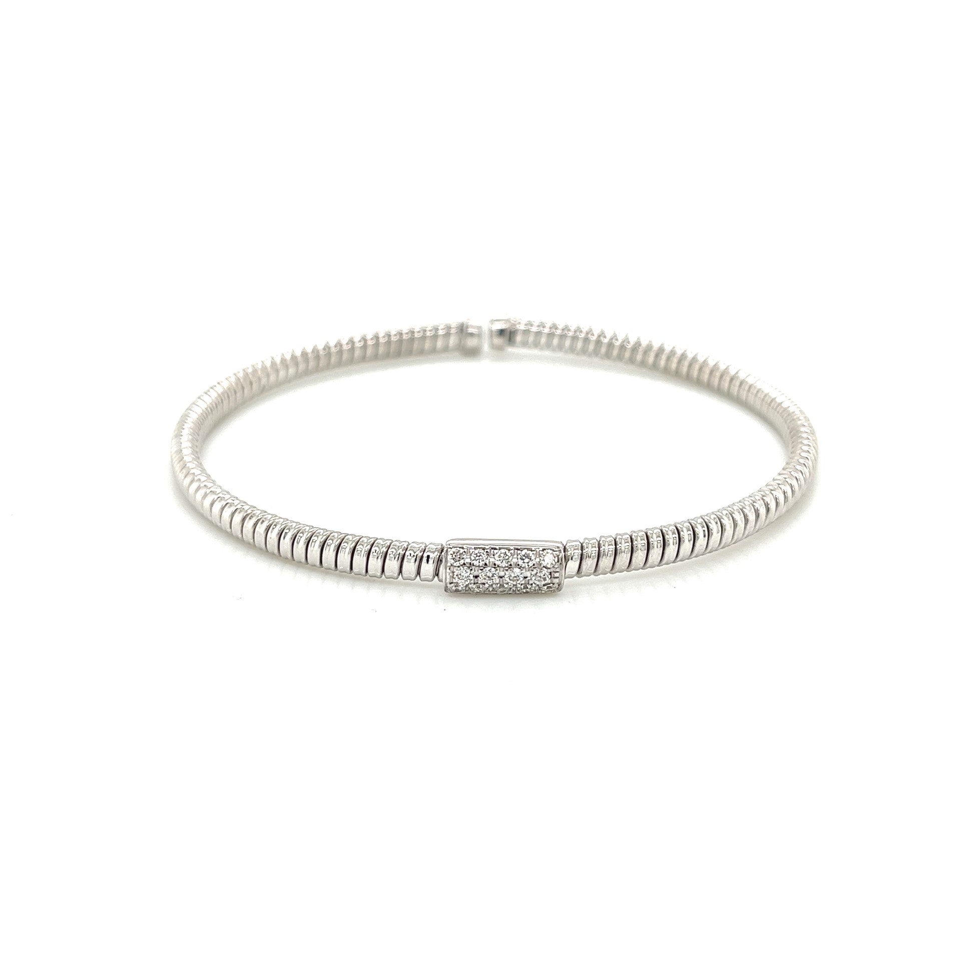 18k white flex bangle with 14 round pave diamonds totaling 0.18ct tw