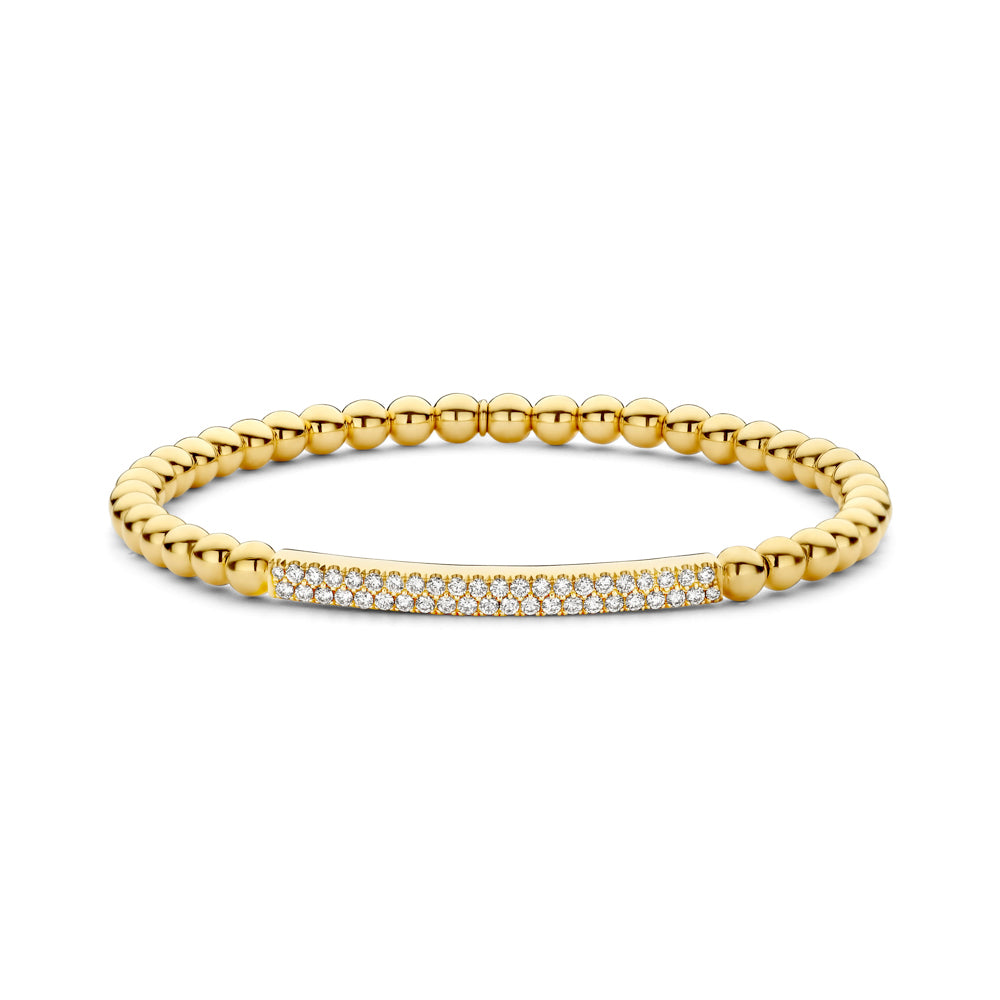 18k yellow gold diamond bar stretch bead bracelet with 44 diamonds 0.41ct