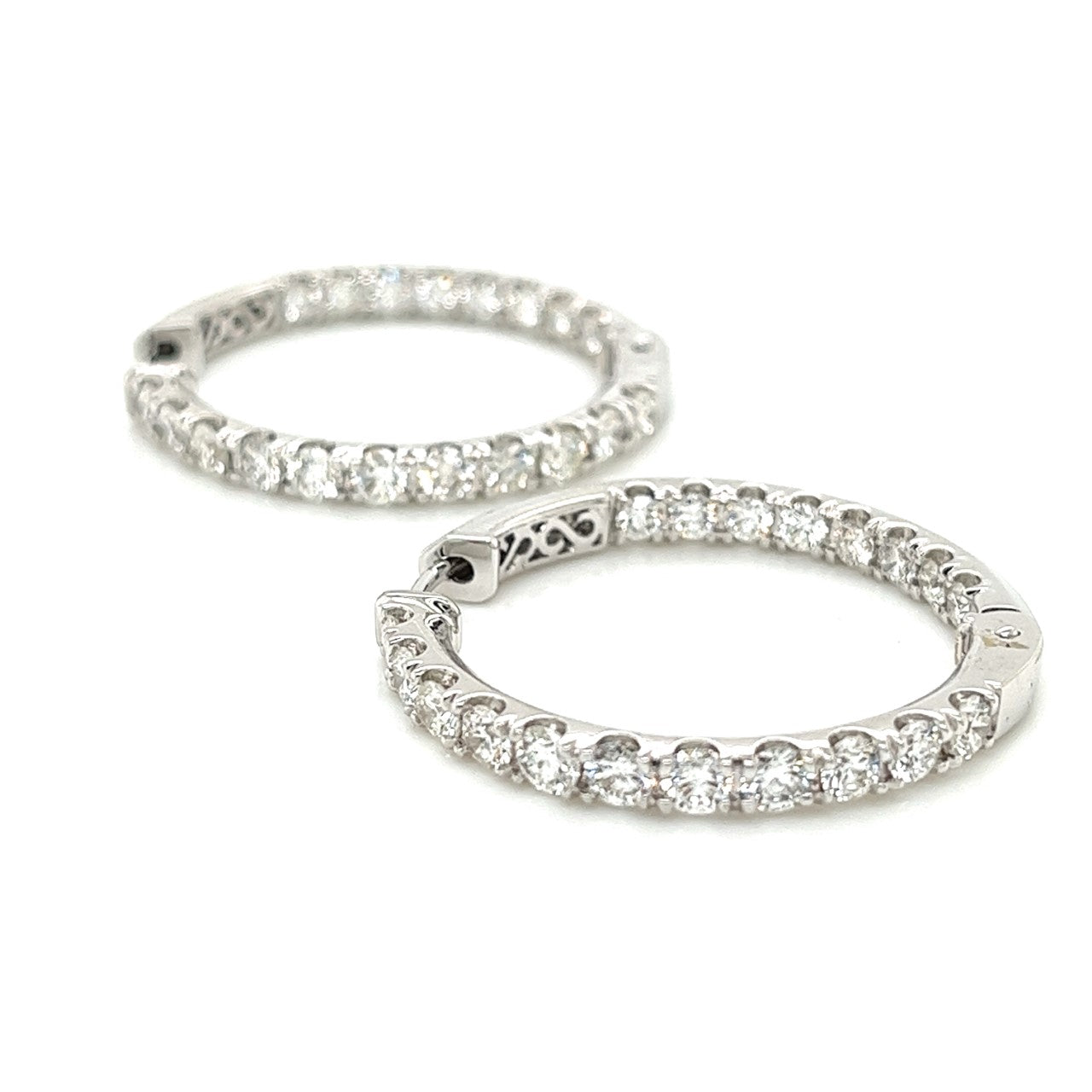 14k white gold inside outside diamond hoops 2.76ct | J Vincent Jewelers
