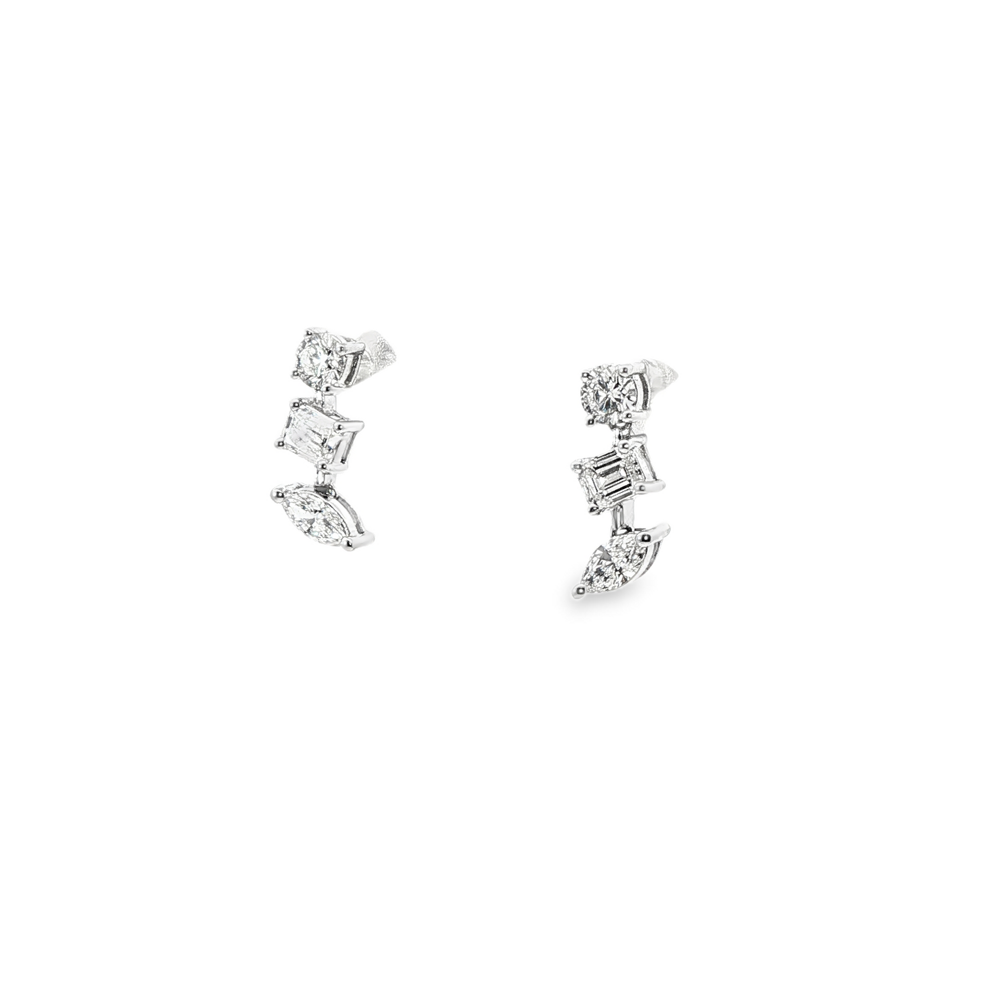 18K WHITE GOLD MIXED DIAMOND 3 DROP EARRINGS 0.63CTW