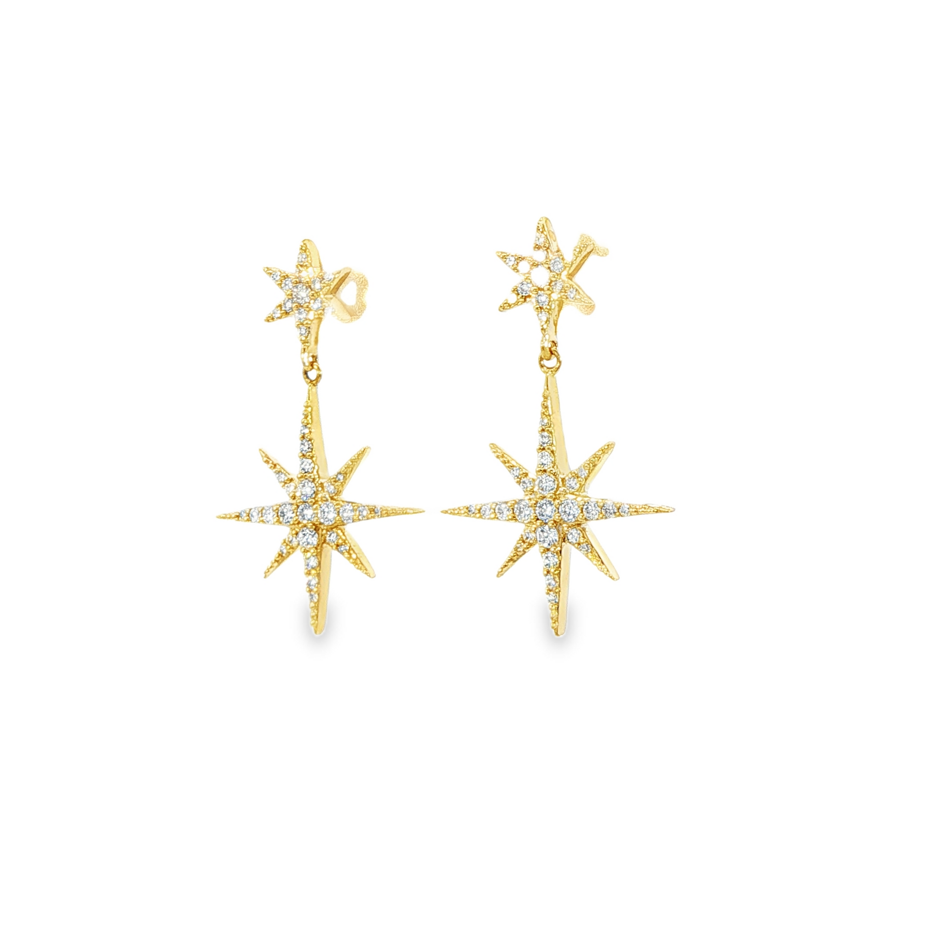 14K YELLOW GOLD SINGLE CUT DIAMOND STARBUSRT DROP EARRINGS 0.34CTW