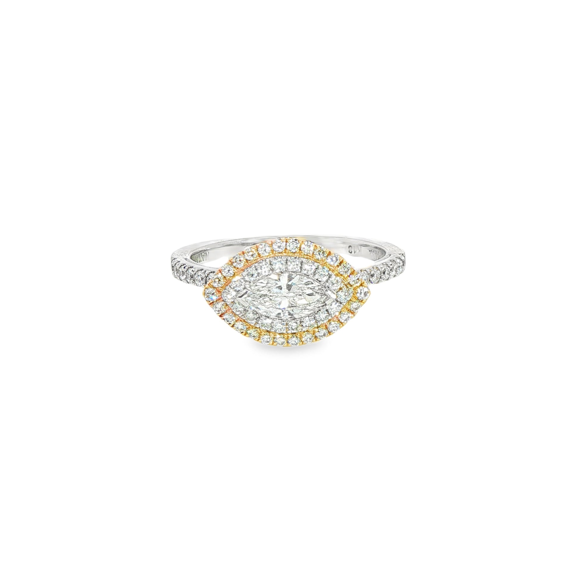 18k two tone east to west marqusie diamond halo ring 0.75ct | J Vincent Jewelers