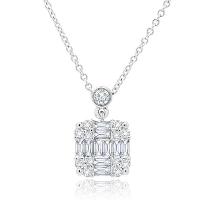 14k white gold diamond cluster pendant with 12 round and baguette diamonds 0.29ct