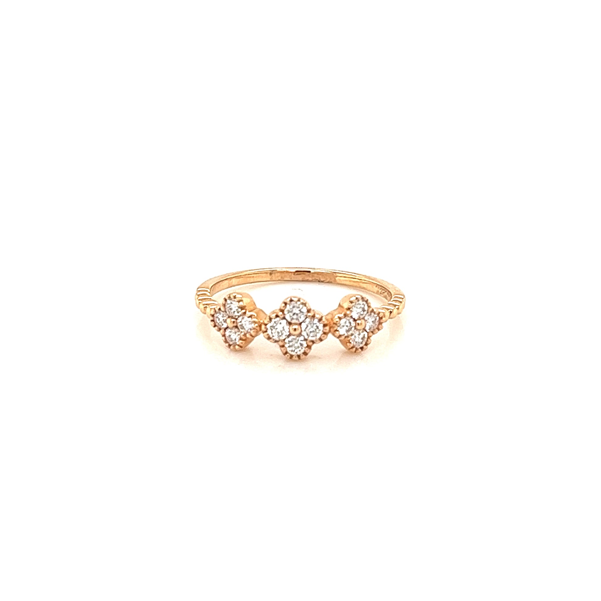 18k rose gold three cluster flower diamond ring 0.34ct | J Vincent Jewelers