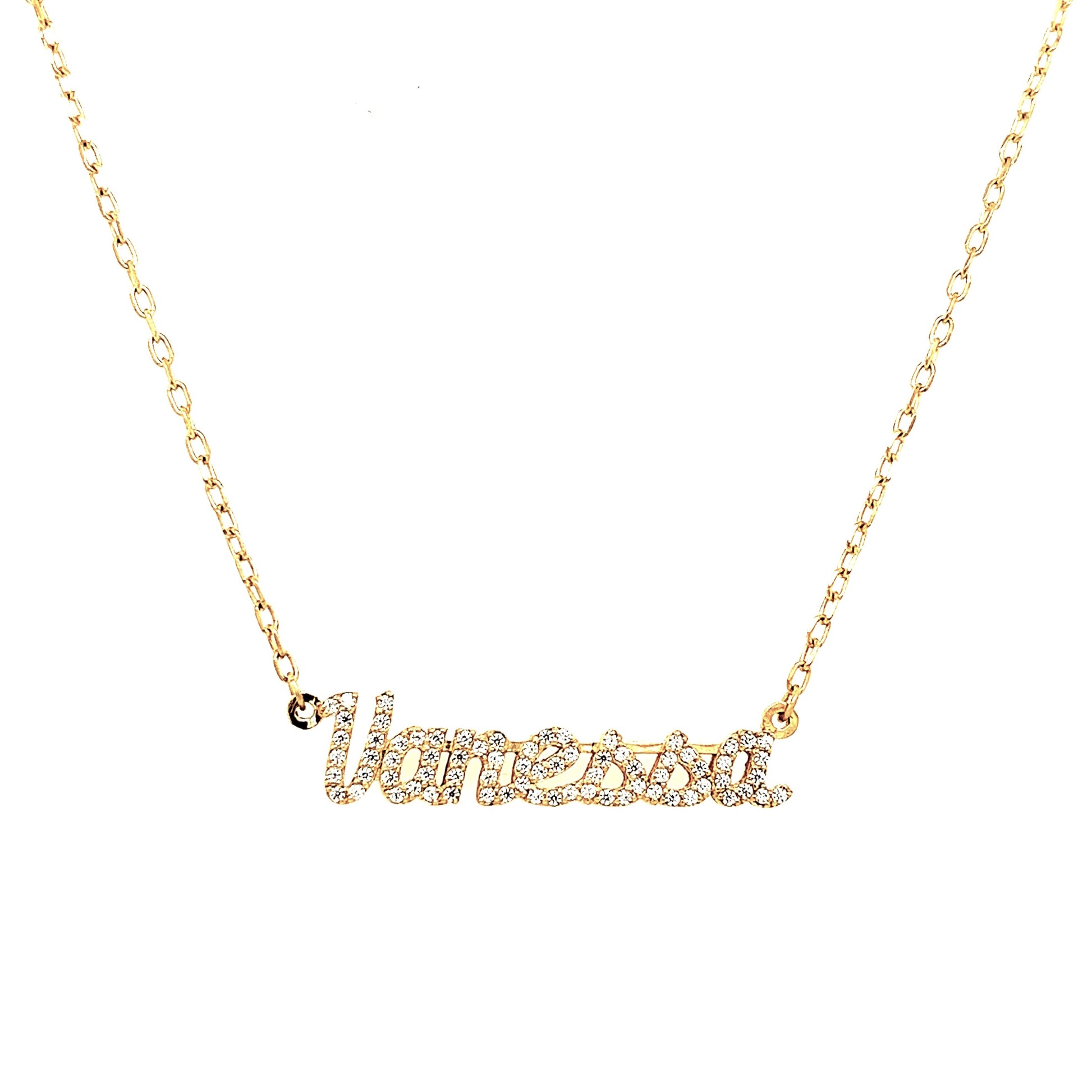 14K YELLOW GOLD NAME PLATE WITH DIAMOND VANESSA