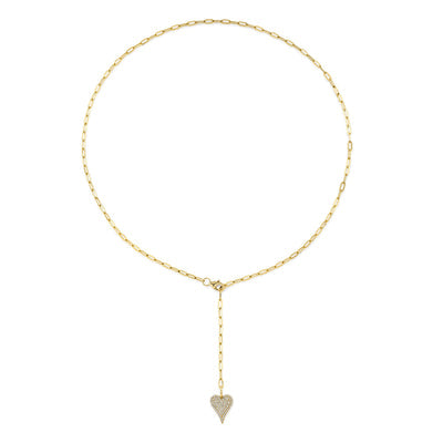 14k yellow gold paperclip link chain with diamond heart lariat 0.21ct