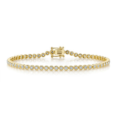 14k yellow gold bezel set diamond tennis bracelet 1.51ct | J Vincent Jewelers