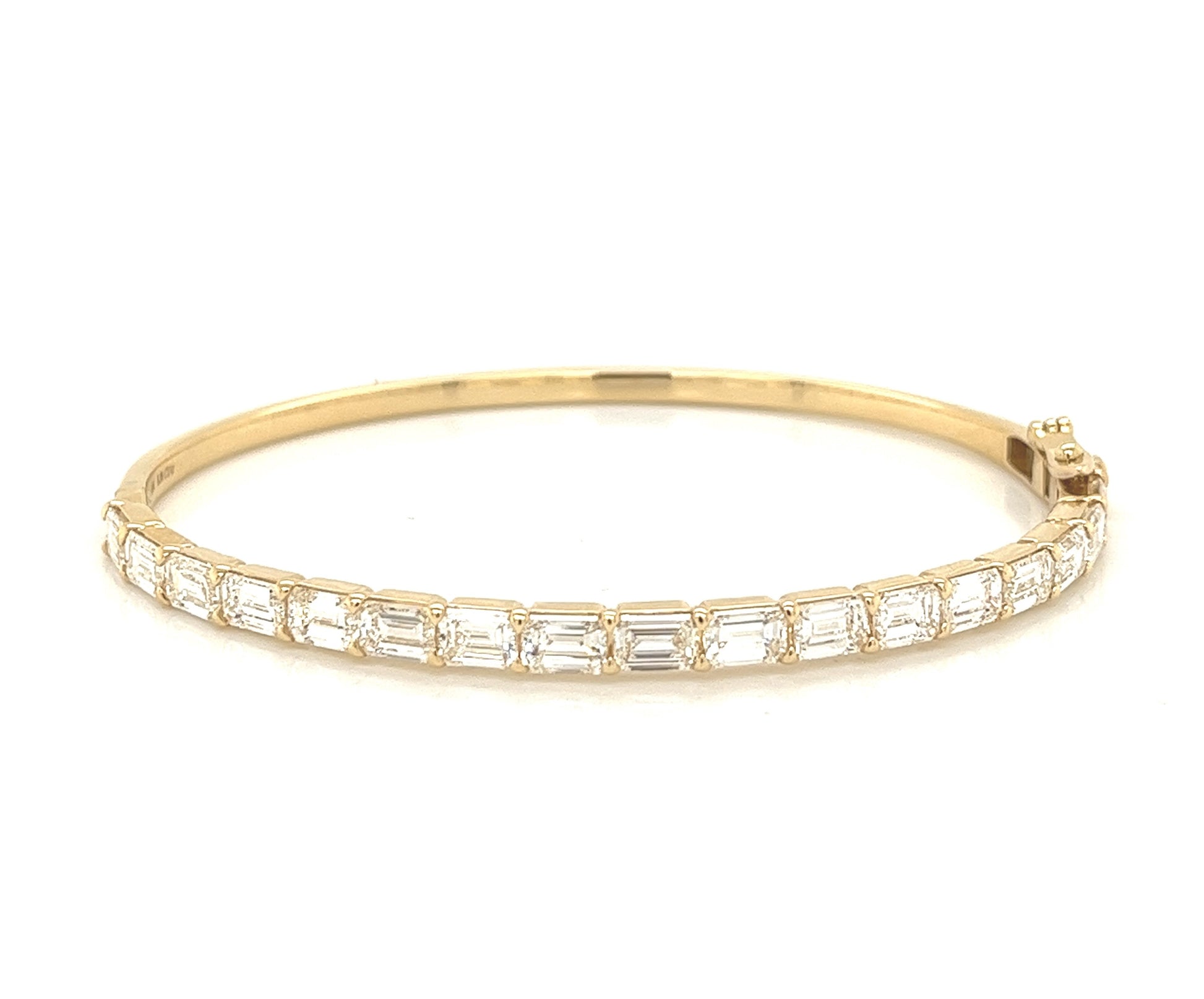 18k yellow gold east to west emerald cut diamond bangle with 17 emerald cut diamonds 5.58ctct i/j color and vs1/vs2 clarity