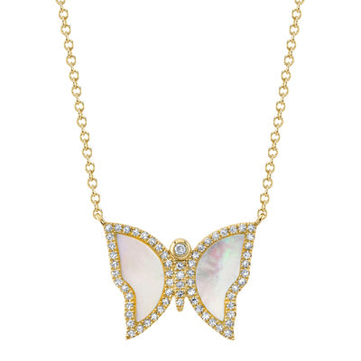 14lk yellow gold diamond and mother of pearl butterfly pendant 0.17ct | J Vincent Jewelers