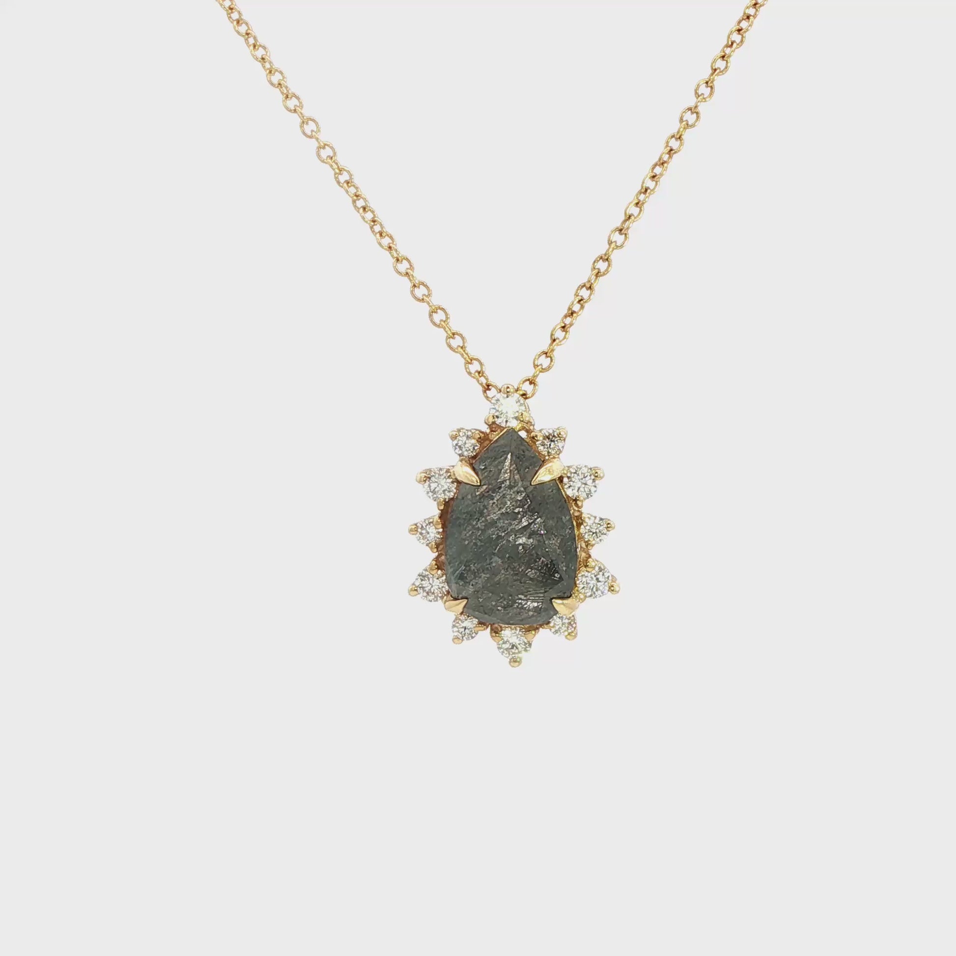 14K Yellow Gold Black And White Rose Cut Diamond 2.97Ct Necklace With Diamond Halo 0.32Ct