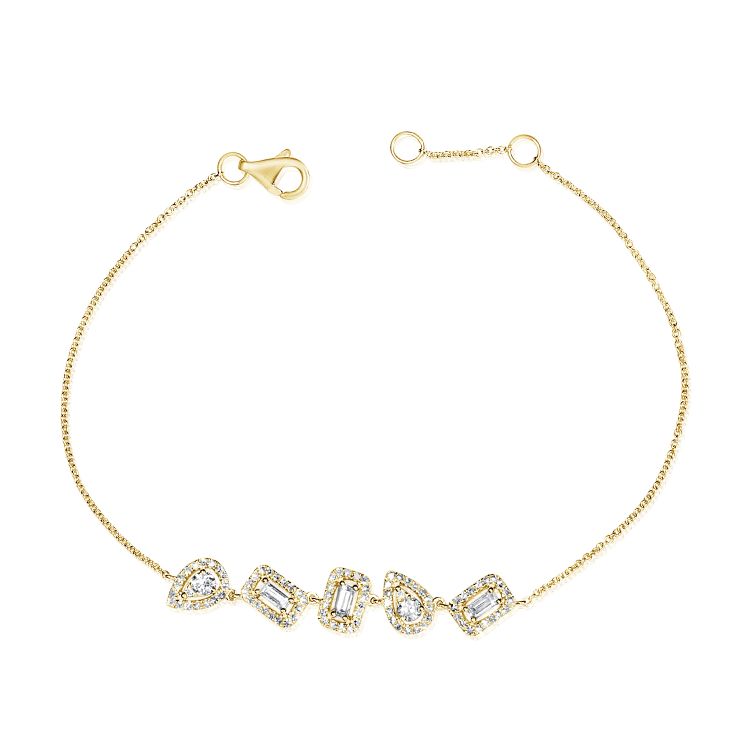 14k yellow gold diamond fashion bracelet with mixed shape diamonds totaling 0.55ct