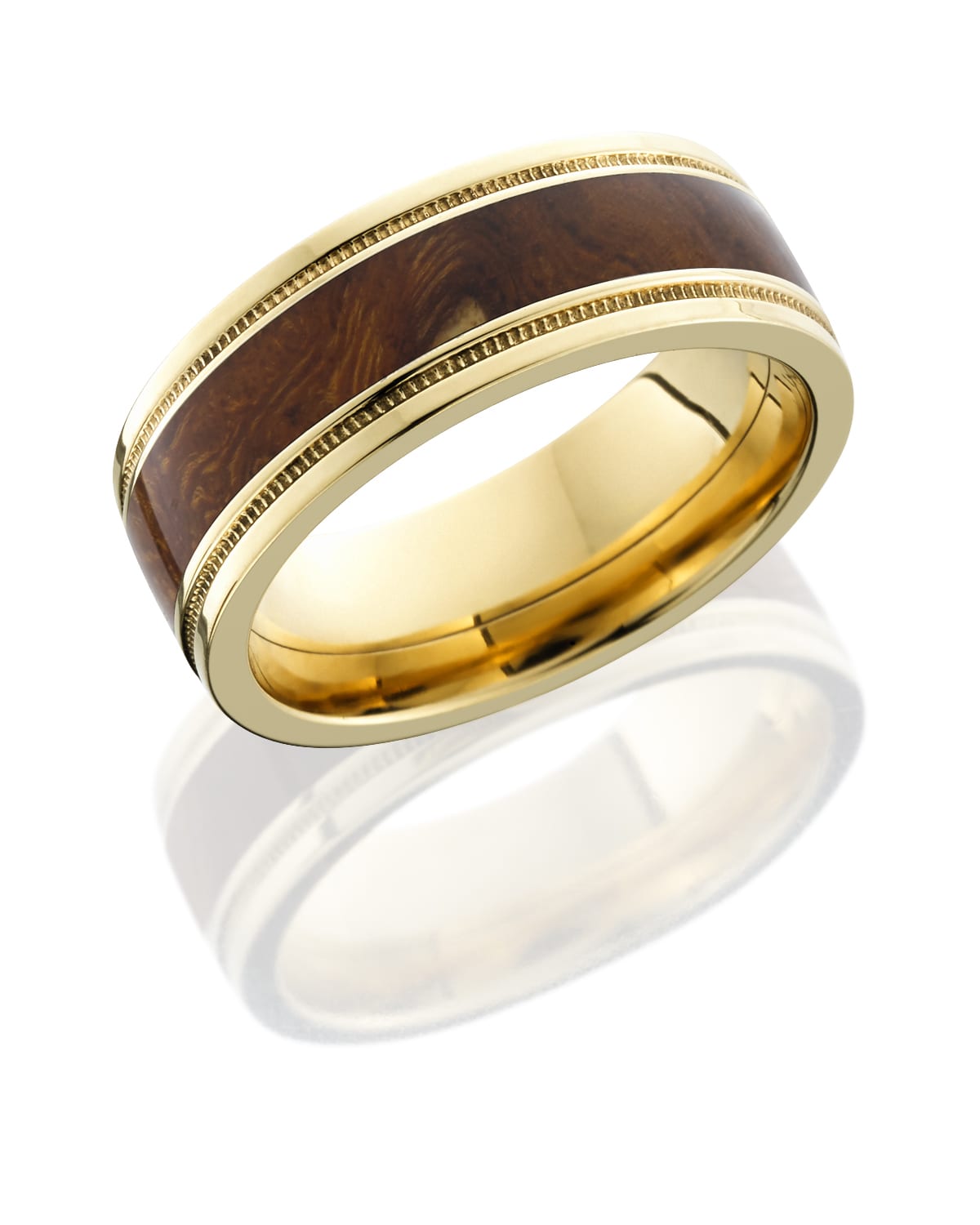 Solid diamond ring with custom beveled edge design. Includes a flush-set diamond with a polish finish.