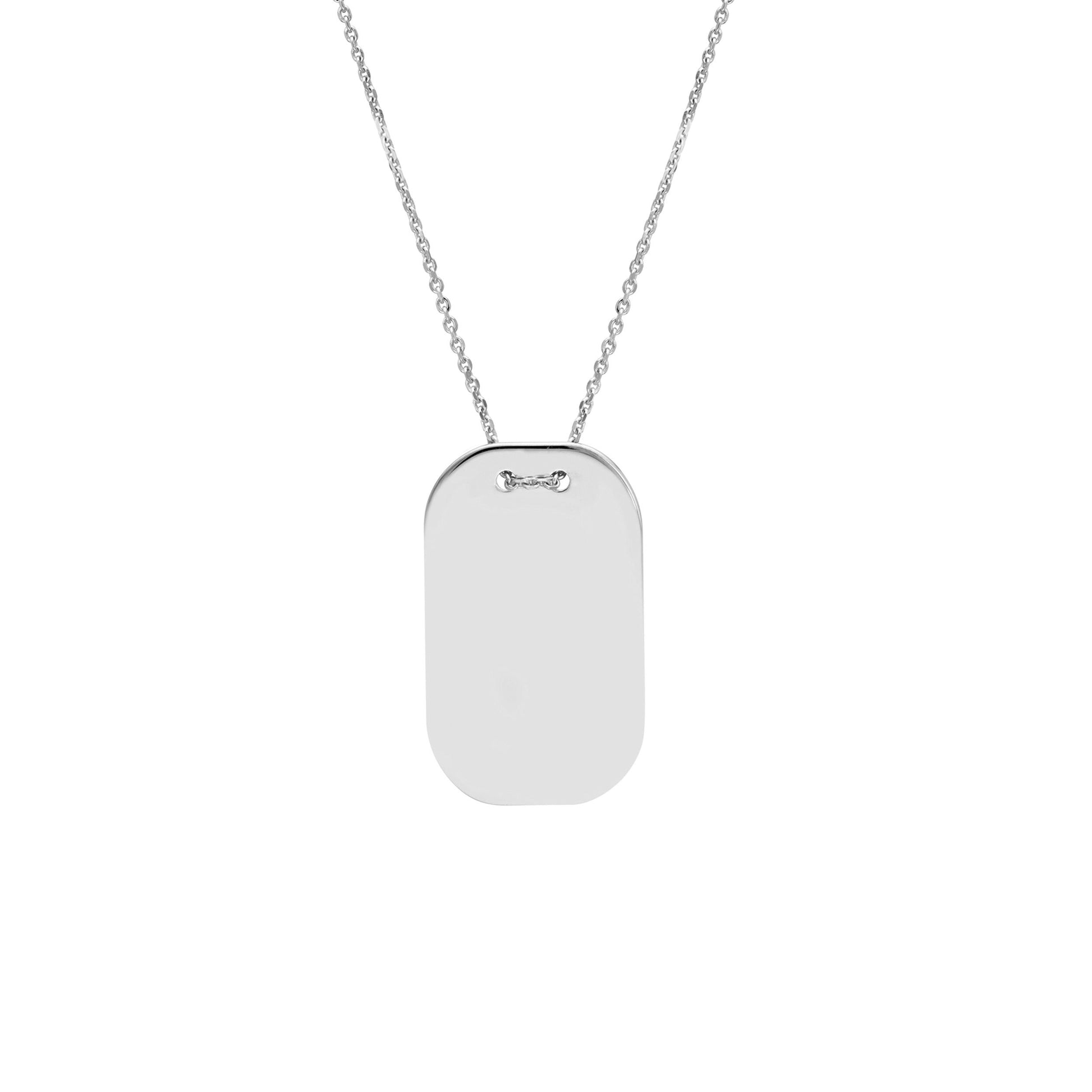 14k white gold adjustable dog tag necklace | J Vincent Jewelers