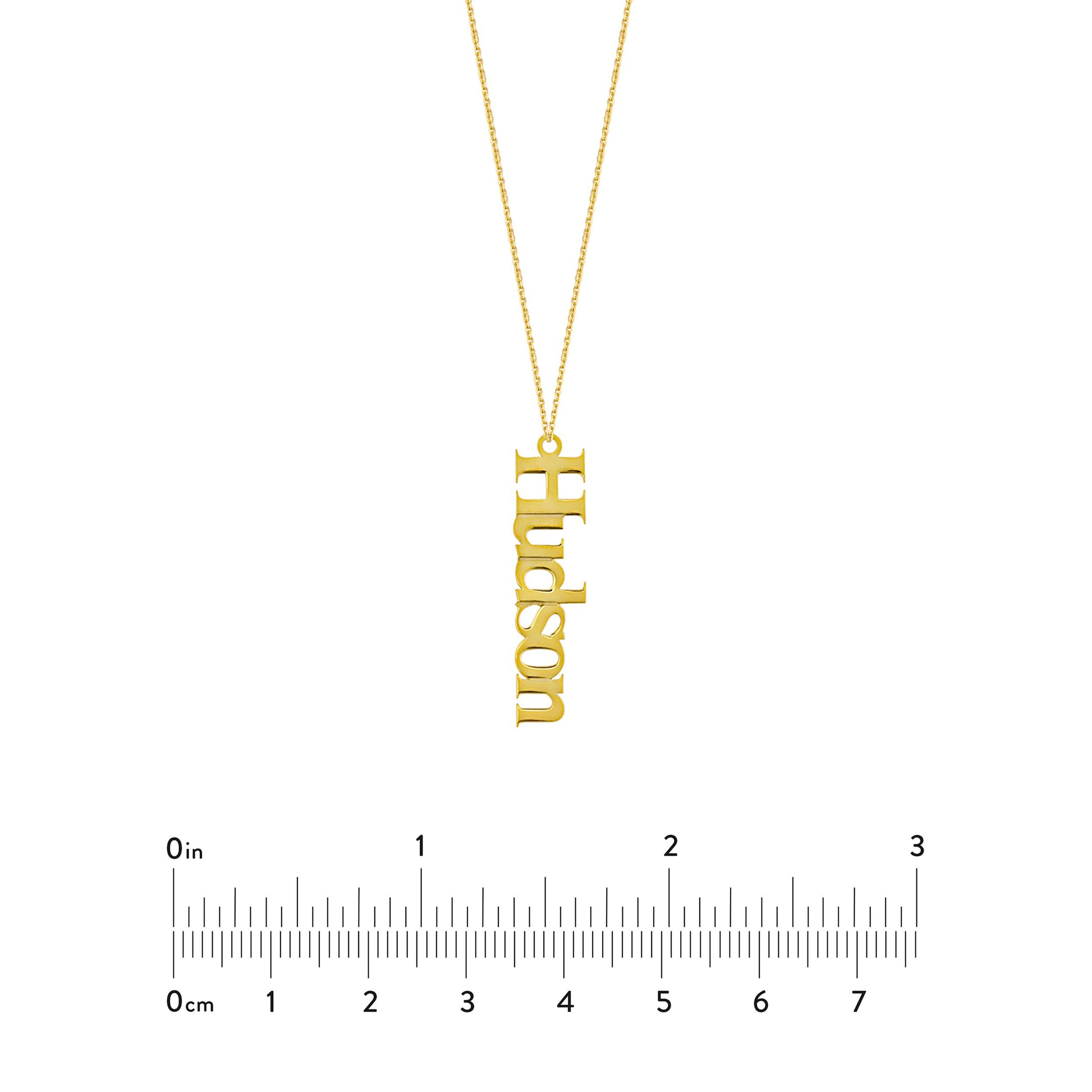 14k yellow gold 5mm typewriter letters 3 vertical name plate on 18inch chain