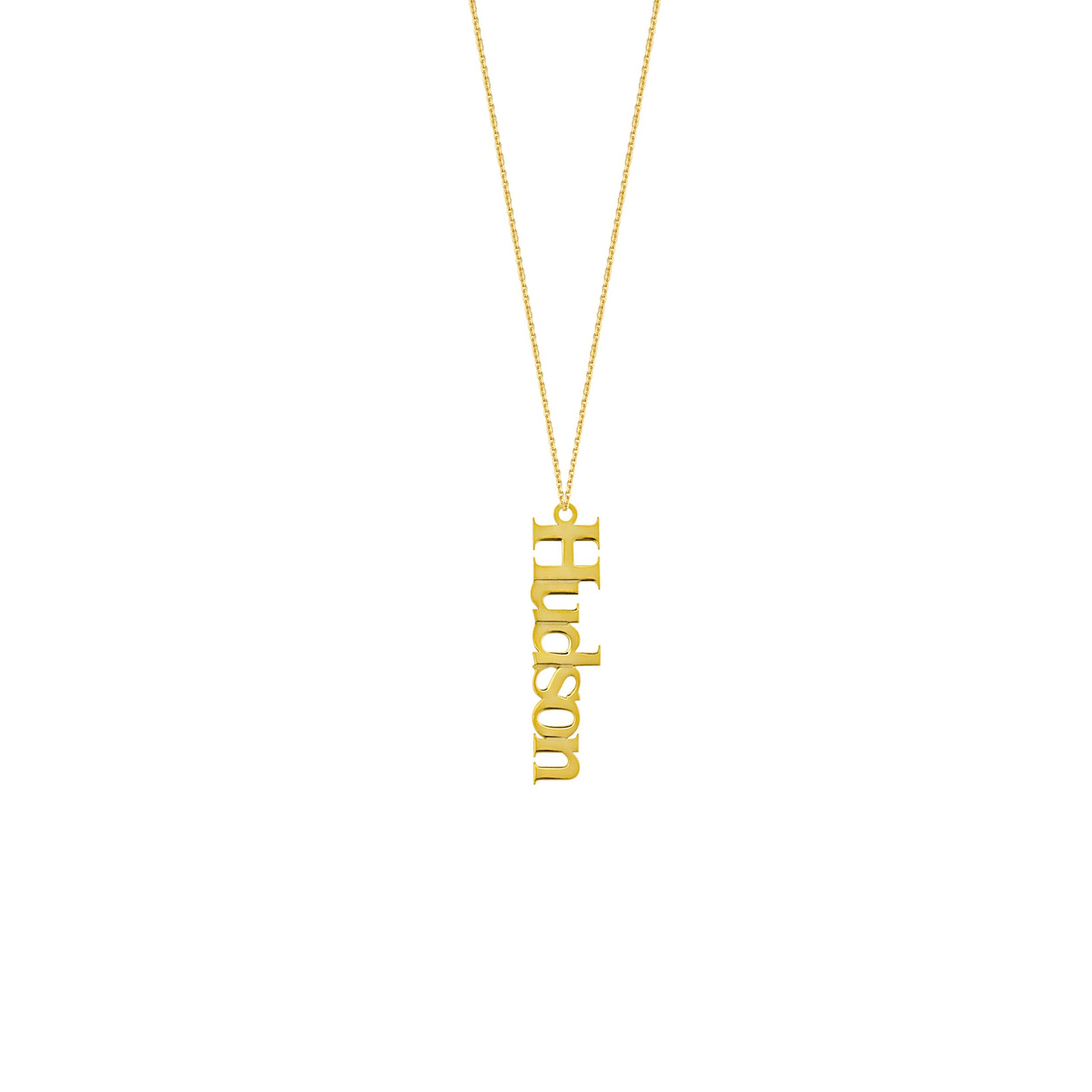 14k yellow gold vertical nameplate | J Vincent Jewelers