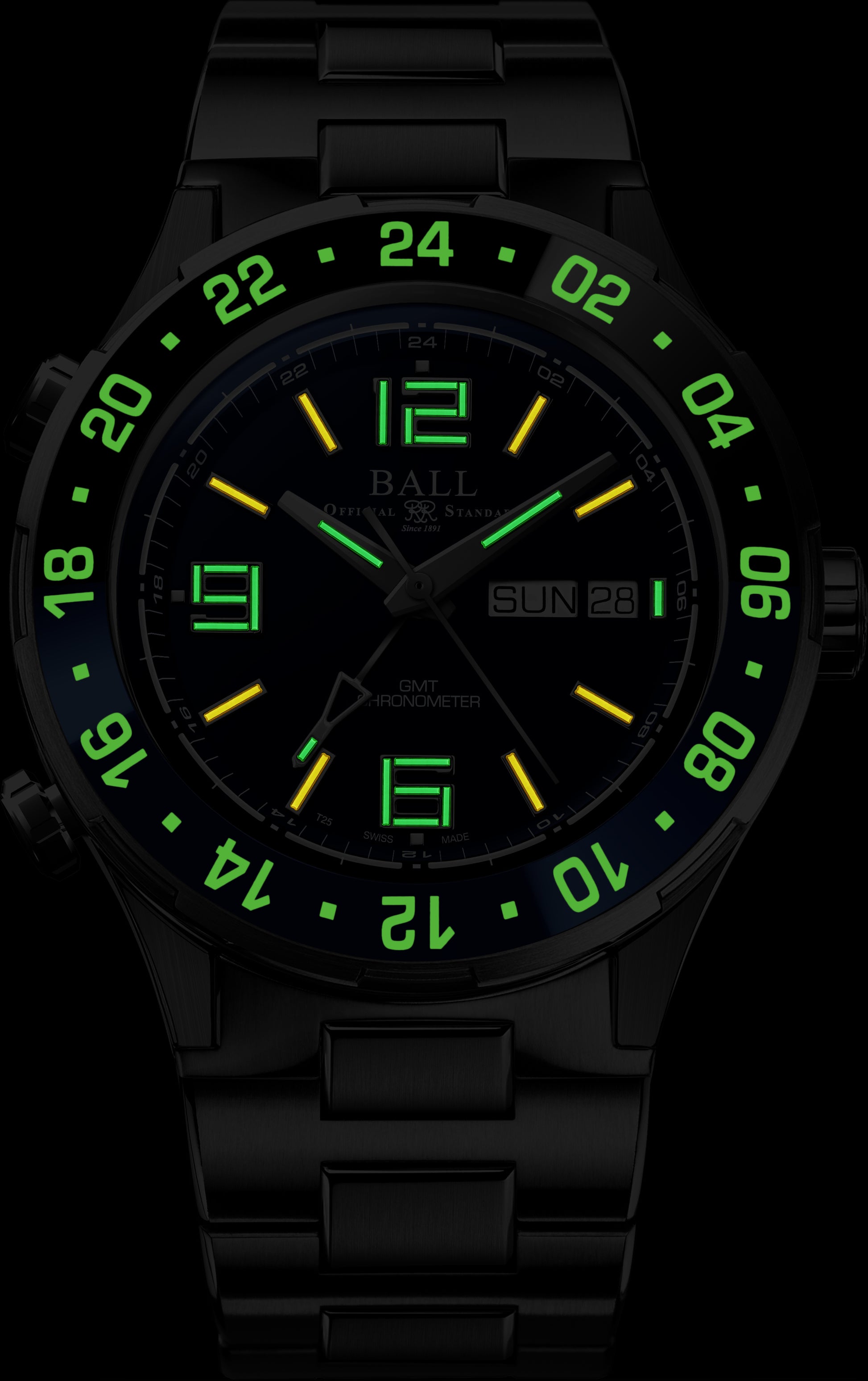 roadmaster auto, limited edition of 1,000 pieces, chronometer, gmt with patented quick set mechanism, 40mm, 200m, day/date, titanium case with black and blue ceramic bidirectional rotating bezel, sapphire casback titanium and stainless steel bracelet with blue dial