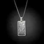 METEORITE PINNACLE - EMBRACES THE STARS, FEATURING METEORITE INLAID SET IN ELEGANT STERLING SILVER WITH STERLING SILVER CHAIN.