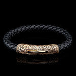 MILAN-BRONZE/BLACK LEATHER MENS BRACELET WITH BRONZE AND BRAIDED LEATHER