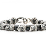shaman - beaded bracelet with sterling silver skulls and frosted black onyx.