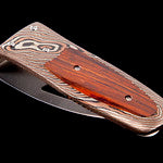 BRAZIL INLAID WITH COCOBOLO WOOD, CLIP IS MACHINED AND BLASTED POLISH FROM TEMPURED STAINLESS STEEL. MATTE FINISHED BACKGROUND