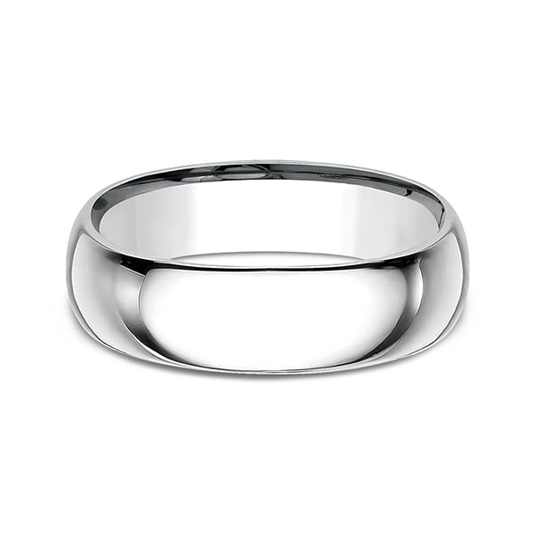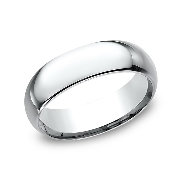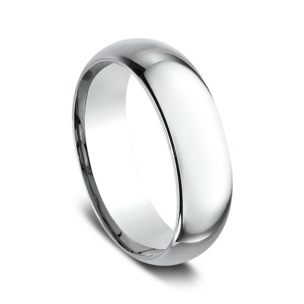This beautiful 14 karat white gold 7mm wedding band features a slightly domed surface and comfort-fit on the inside for unforgettable comfort. Benchmark has been manufacturing designer wedding rings in gold platinum and palladium for over 40 years. Made in the USA using 100% recycled materials you can feel good about choosing Benchmark wedding bands.