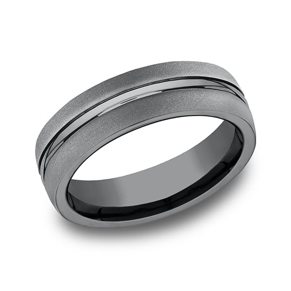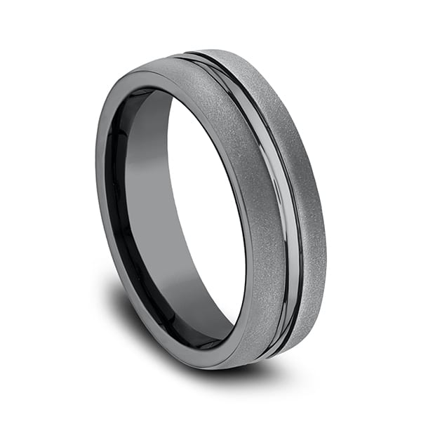 Sleek lines meet tenacious durability with this 6.5mm comfort-fit satin finish Tantalum wedding ring. Our newest concept in contemporary wedding rings is our Tantalum wedding bands. Made in the USA our Tantalum wedding bands are hypo-allergenic impervious to breakage and corrosion and easy to remove in an emergency. Using proprietary technology to create unique design and construction our Tantalum mens wedding bands are beautiful works of art.