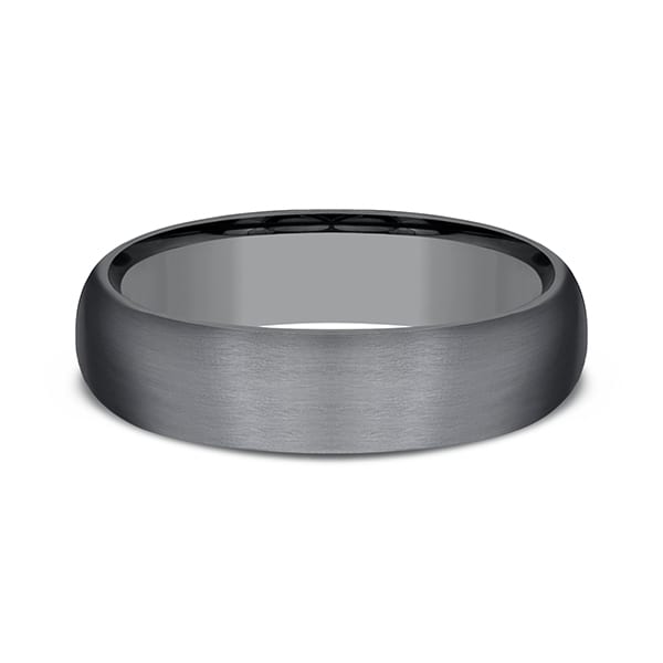 This stunning 6mm tantalum wedding band is organically blackened and features a slight flat satin finish surface and offers comfort-fit on the inside for unforgettable comfort. The newest concept in contemporary wedding rings is our tantalum wedding bands. Made in the USA our tantalum rings are hypo-allergenic impervious to breakage and corrosion and easy to remove in an emergency. Using proprietary technology to create unique design and construction our tantalum mens wedding bands are beautiful works of art.