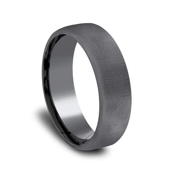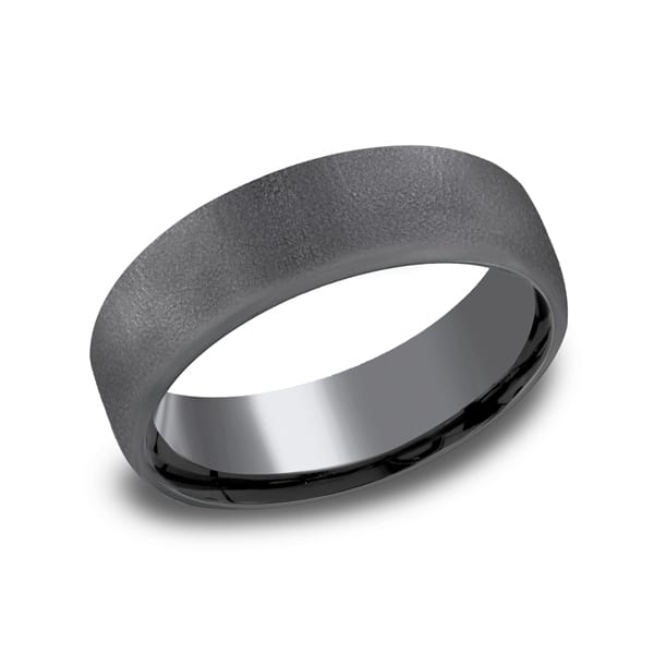 We've created our iconic European comfort-fit profile in Tantalum and gave it an industrial flavor with a wire brush finish on this 6.5mm comfort-fit wedding ring. The newest concept in contemporary wedding rings is our Tantalum wedding bands. Made in the USA our Tantalum rings are hypo-allergenic impervious to breakage and corrosion and easy to remove in an emergency. Using proprietary technology to create unique design and construction our Tantalum mens wedding bands are beautiful works of art.
