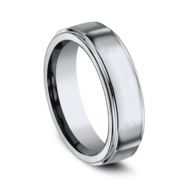 This titanium 7mm comfort-fit high polished band not only has the extraordinary look of a traditional band, but offers great strength and durability. Forge by Benchmark offers contemporary wedding rings in cobalt, titanium, Damascus Steel and tungsten. Some of our most durable and rugged wedding bands for men, our Forge line of wedding rings are sure to last a lifetime.