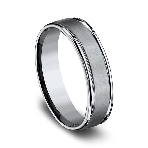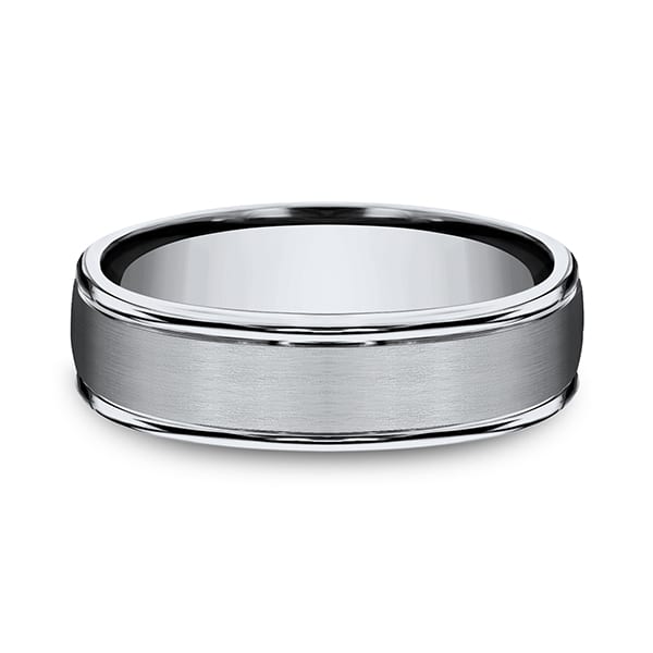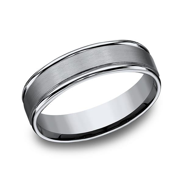This titanium comfort-fit 6mm satin finish wedding band features a high polished edge that offers not only great style, but remarkable strength and durability. Forge by Benchmark offers contemporary wedding rings in cobalt, titanium, Damascus Steel and tungsten. Some of our most durable and rugged wedding bands for men, our Forge line of wedding rings are sure to last a lifetime.