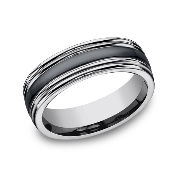Tungsten and Seranite Two-Tone Design Wedding Band