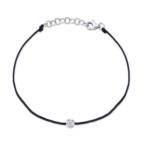 White Gold Bezel Set Black Cord Bracelet | J Vincent Jewelers