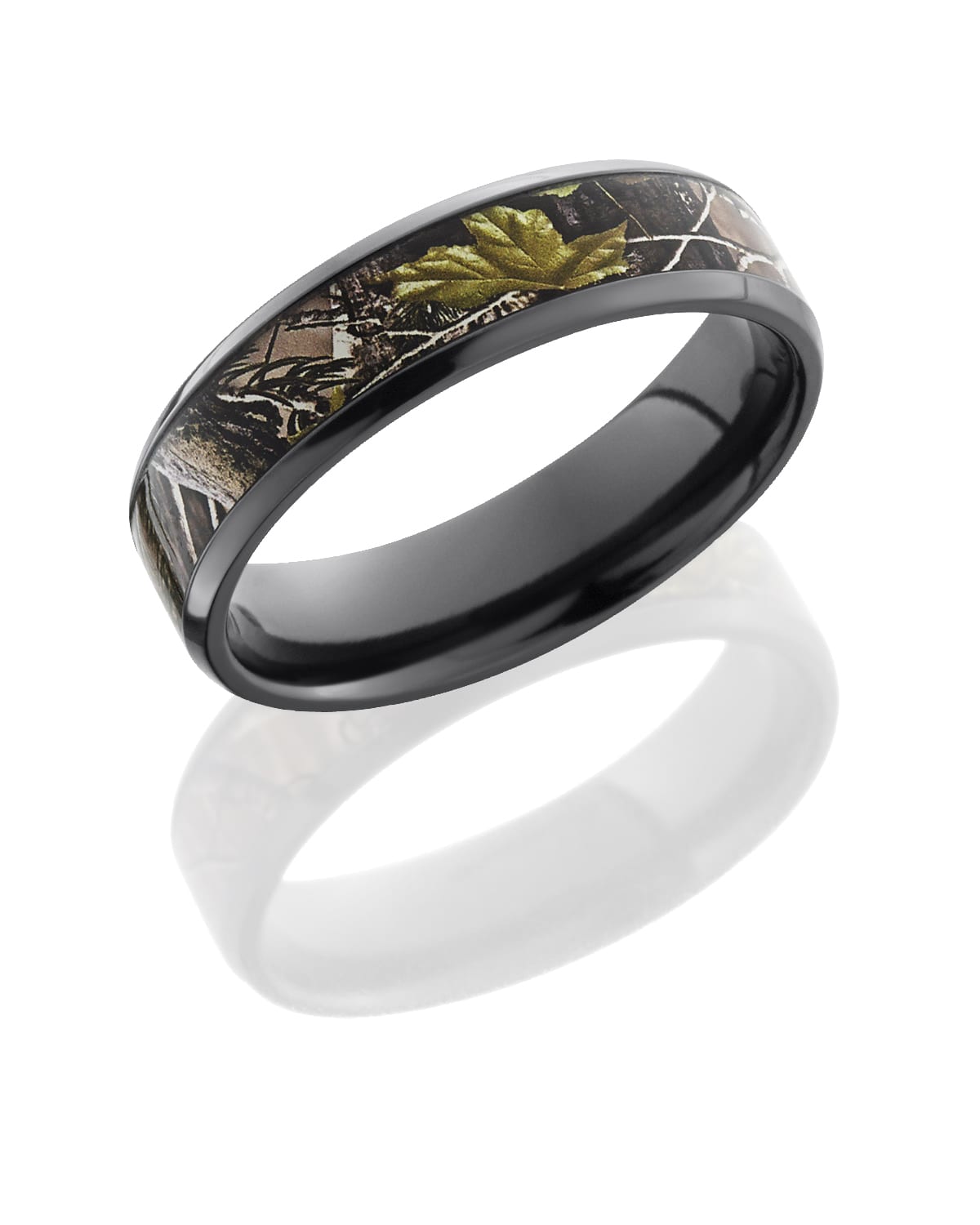 Zirconium 6mm beveled band with 4mm Real Tree APG pattern