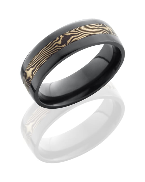 Zirconium 7mm Flat Band with 3mm 14KW and Shakudo Mokume