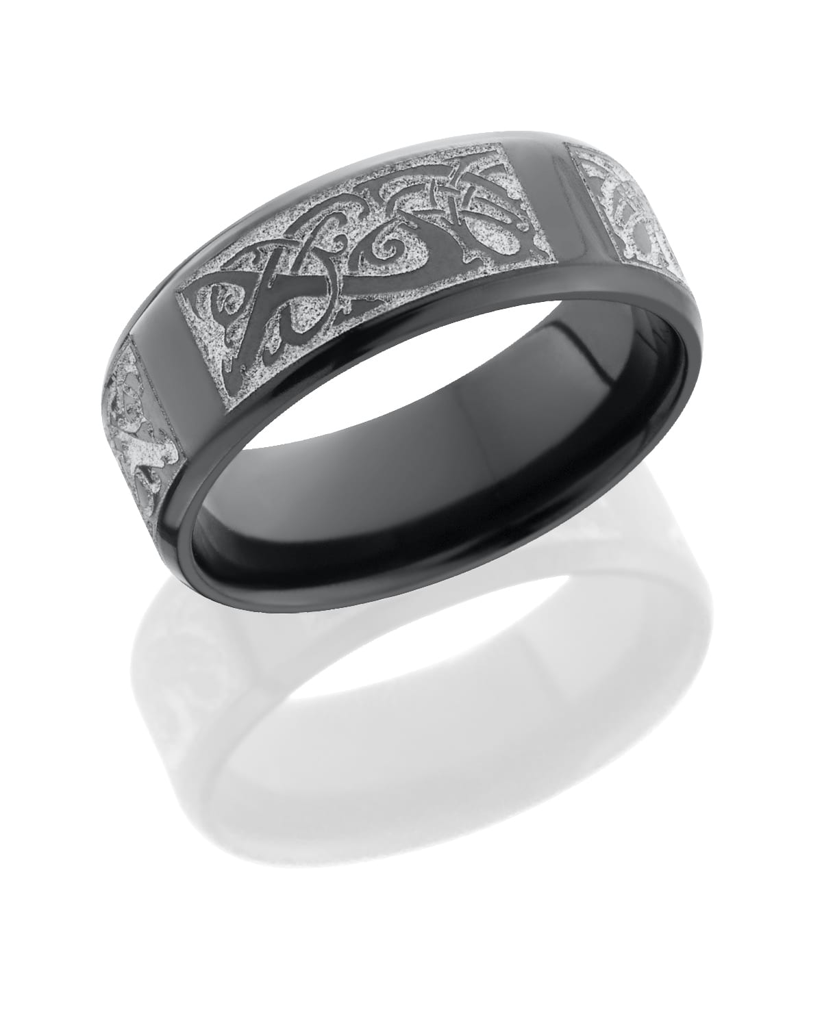 Zirconium 8mm beveled band with laser carved Serpents pattern