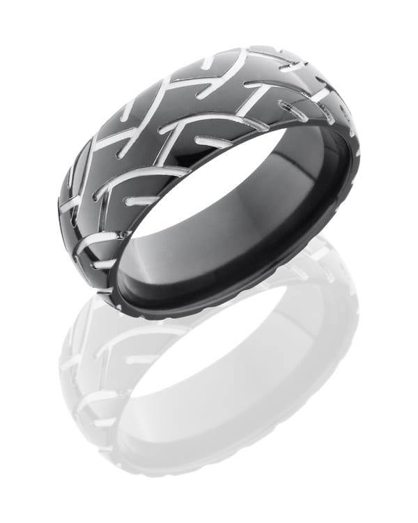 Zirconium 8mm Domed Band with Tire Tread Pattern