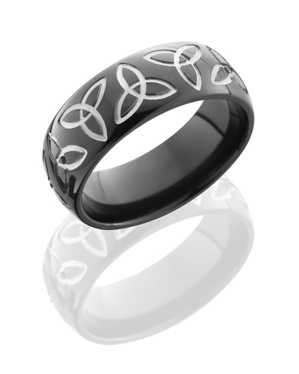 Zirconium 8mm Domed Band with Trinity Pattern