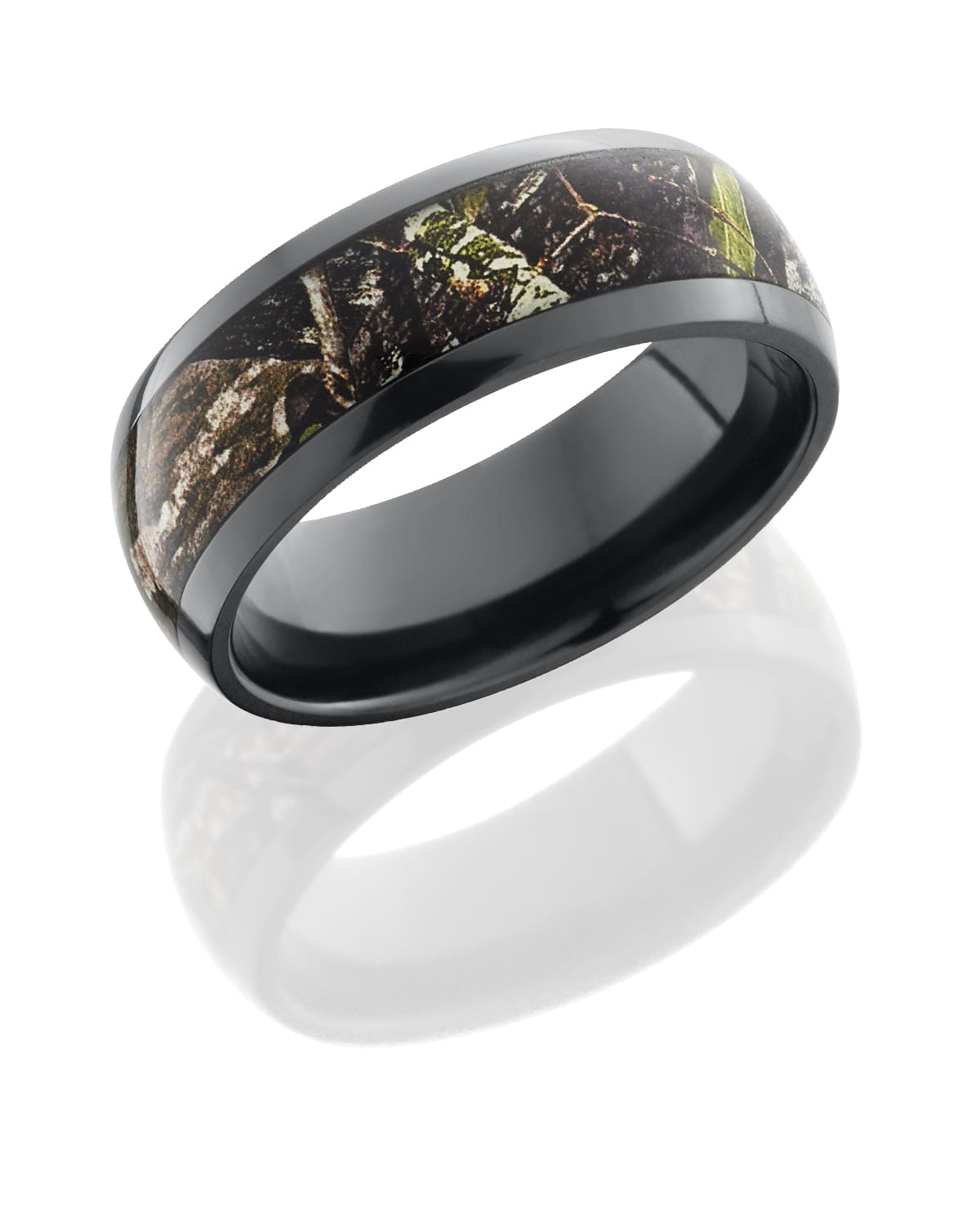 Zirconium 8mm domed band with 5mm Mossy Oak Obsession pattern