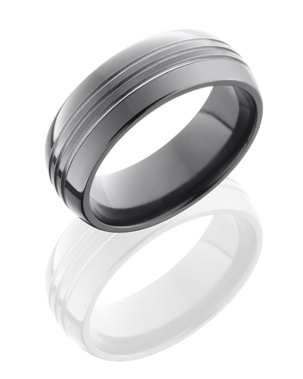 Zirconium 8mm Domed Band with three .5mm Grooves