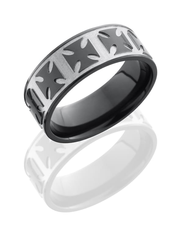 Zirconium 8mm Flat Band with Maltese Cross Pattern
