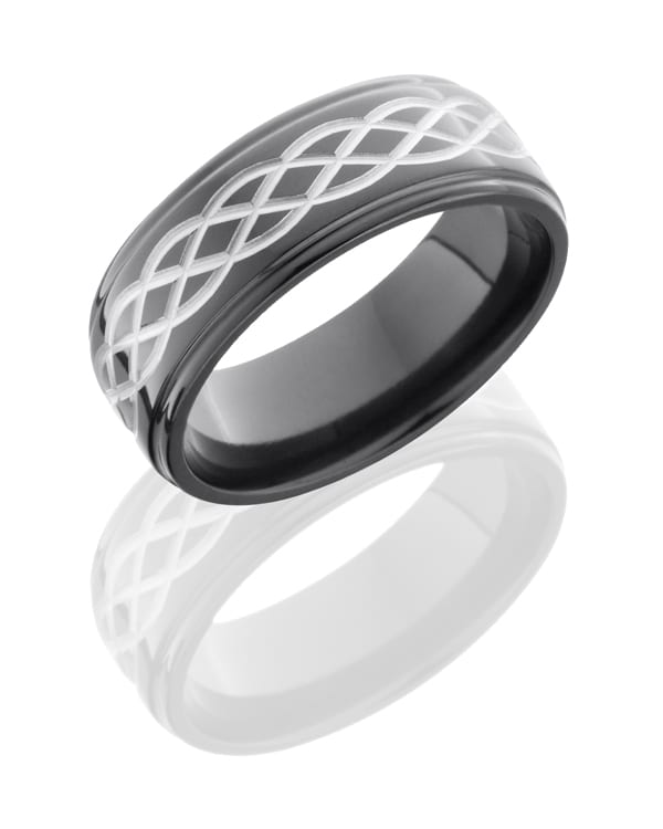 Zirconium 8mm Flat Band with Grooved Edges and Celtic Pattern