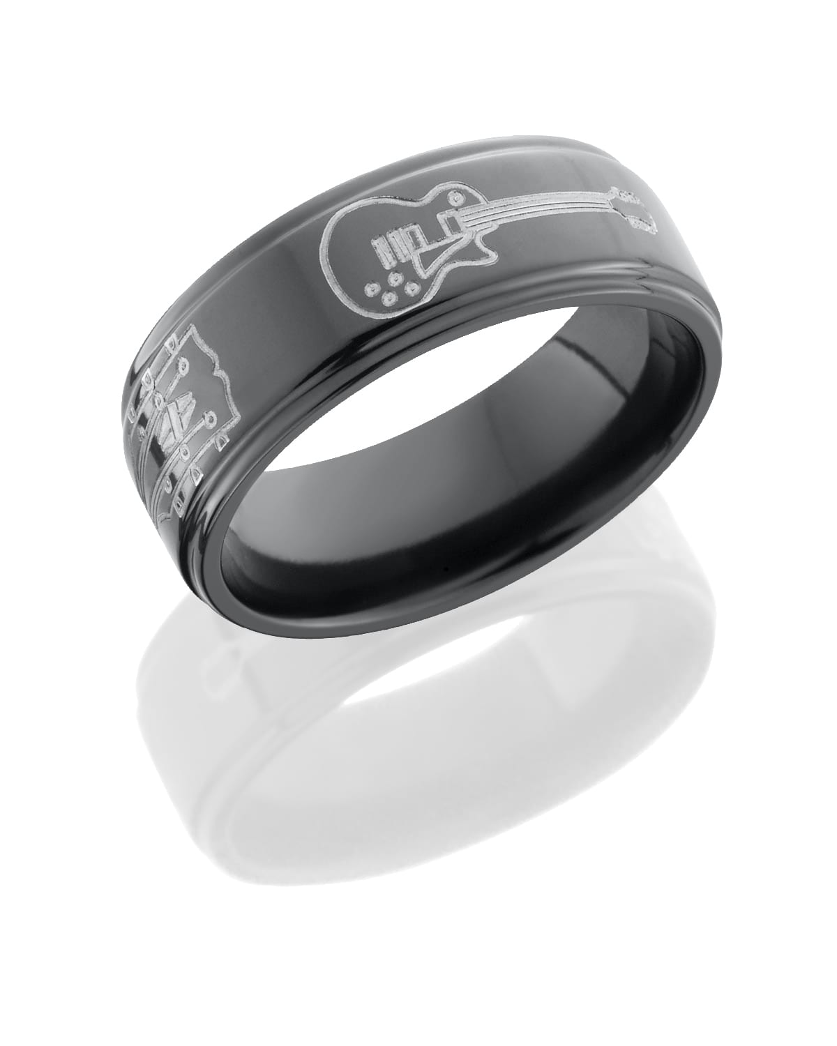 Zirconium 8mm flat band with grooved edges with milled guitar patterns