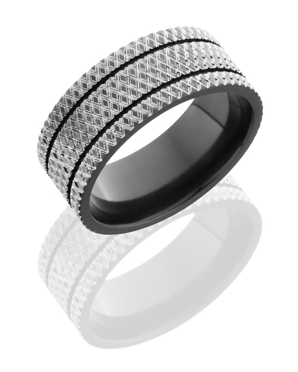 Zirconium 9mm Flat Band with two .5mm Grooves and Knurl Pattern